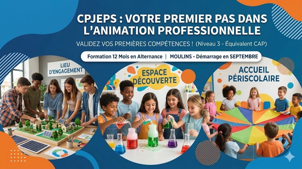 Vous souhaitez valider vos premières compétences et faire de l’animation votre métier ? Le CPJEPS (Certificat Professionnel de la Jeunesse, de l’Éducation Populaire et du Sport) mention animateur d’activités et de vie quotidienne dans toute structure de loisirs et d’animation socioculturelle